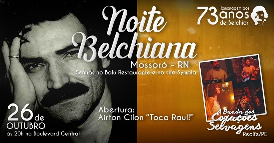O evento acontecerá no Boulevard Central, a partir das 20h e terá ainda exposição com itens de Belchior e venda de livros. As senhas já estão sendo comercializadas no site Sympla (https://www.sympla.com.br/noite-belchiana-mossoro__669209) ou no restaurante Balú, no próprio shopping ao preço de R$ 20,00.
