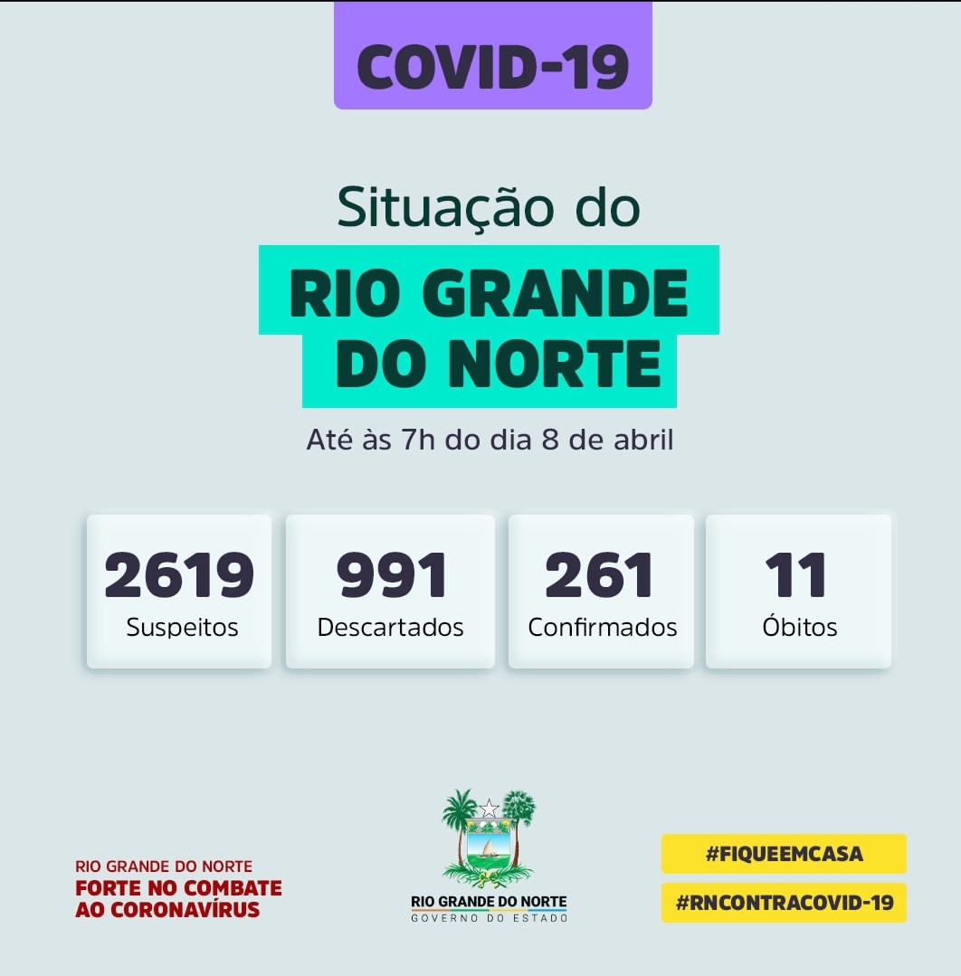São 991 casos descartados, 261 confirmados 2.619 suspeitos. Hoje o Estado chegou a 11 óbitos (ver AQUI e AQUI).