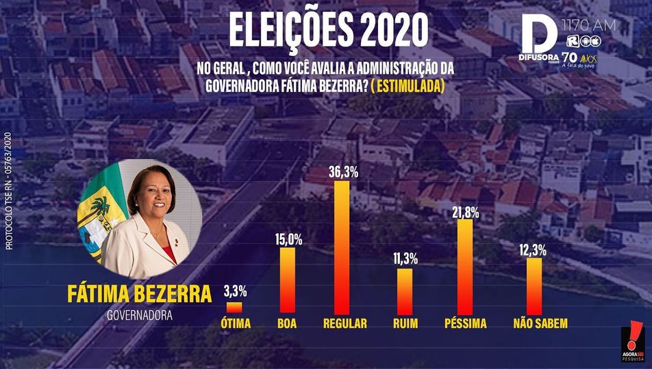 A pesquisa foi realizada nos dias 9 e 10 de outubro e tem margem de erro de 3,9% com intervalo de confiança de 95%. O Insituto AgoraSei registrou a pesquisa na Justiça Eleitoral com o número de registro RN-05763/2020.