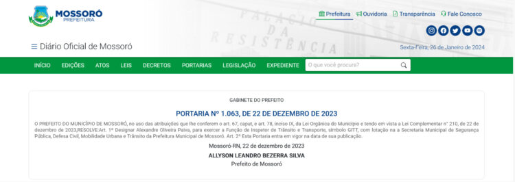 Ainda assim, em 22 de dezembro do ano passado o Prefeito nomeou Alexandre para a função de inspetor de trânsito e transporte. Antes, em 28 de outubro, ele já havia sido nomeado para a função gratificada de chefe do setor de fiscalização de trânsito e transporte.