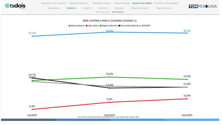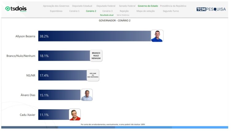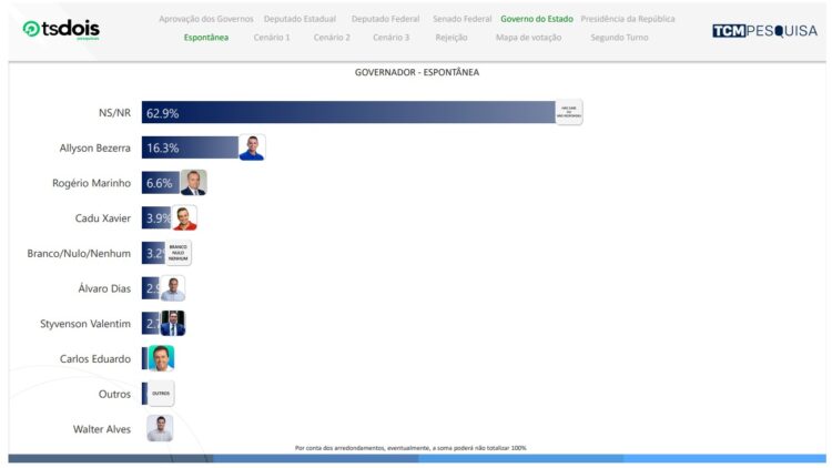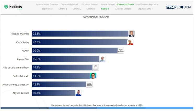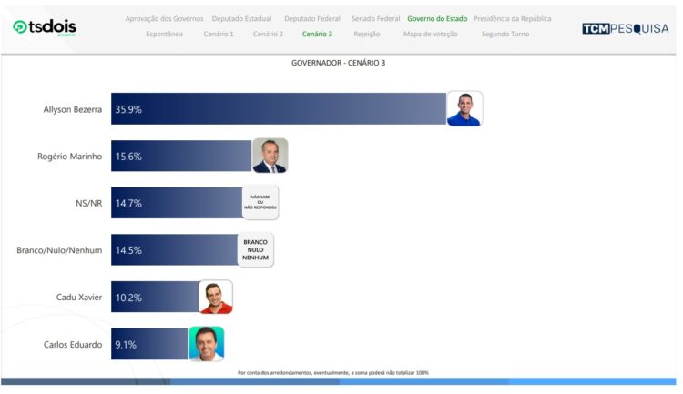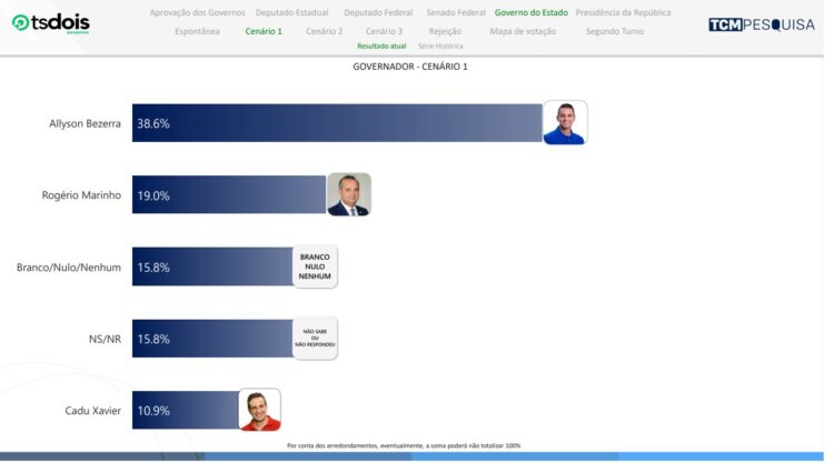 Já o prefeito de Mossoró Allyson Bezerra (UB) e o senador Rogério Marinho (PL) oscilaram negativamente, mas dentro da margem de erro, o que indica estabilidade nas intenções de voto dos dois primeiros colocados.