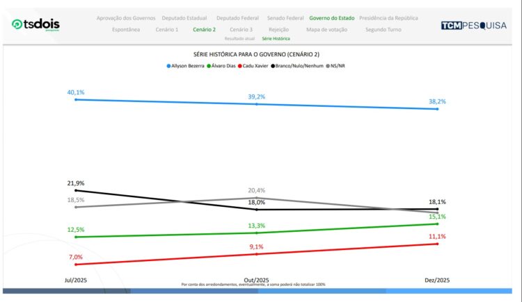 A série histórica da pesquisa TCM/TS2 traz como novidade o crescimento do secretário estadual da fazenda Cadu Xavier (PT) na corrida ao Governo do Estado.