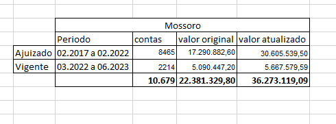Confira o trecho da planilha com a dívida: