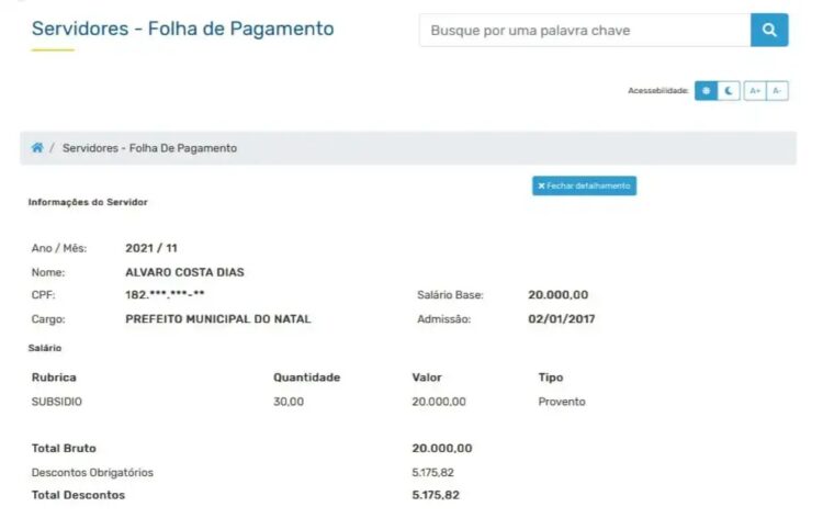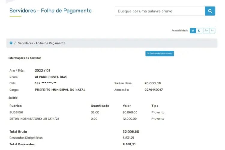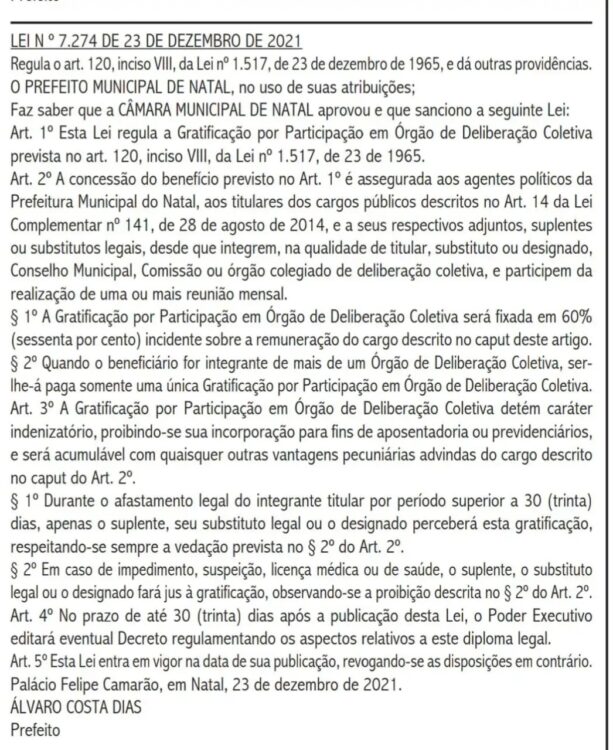 No dia 23 de dezembro de 2021, quando as atenções estavam voltadas para as confraternizações natalinas, o prefeito de Natal, Álvaro Dias (PSDB), se presenteou com uma gratificação no valor de 60% de seu próprio salário.