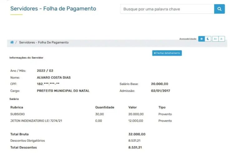 O aumento foi publicado no Diário Oficial do Município do dia 24 de dezembro de 2021. De acordo com o Portal da Transparência da Prefeitura de Natal, Álvaro Dias, que até dezembro de 2021 recebia uma remuneração de R$ 20.000 para exercer o cargo de prefeito da capital potiguar, passou a ter em seu contracheque mais R$ 12.000 de indenização, num total de R$ 32.000 de salário a partir de janeiro de 2022.
