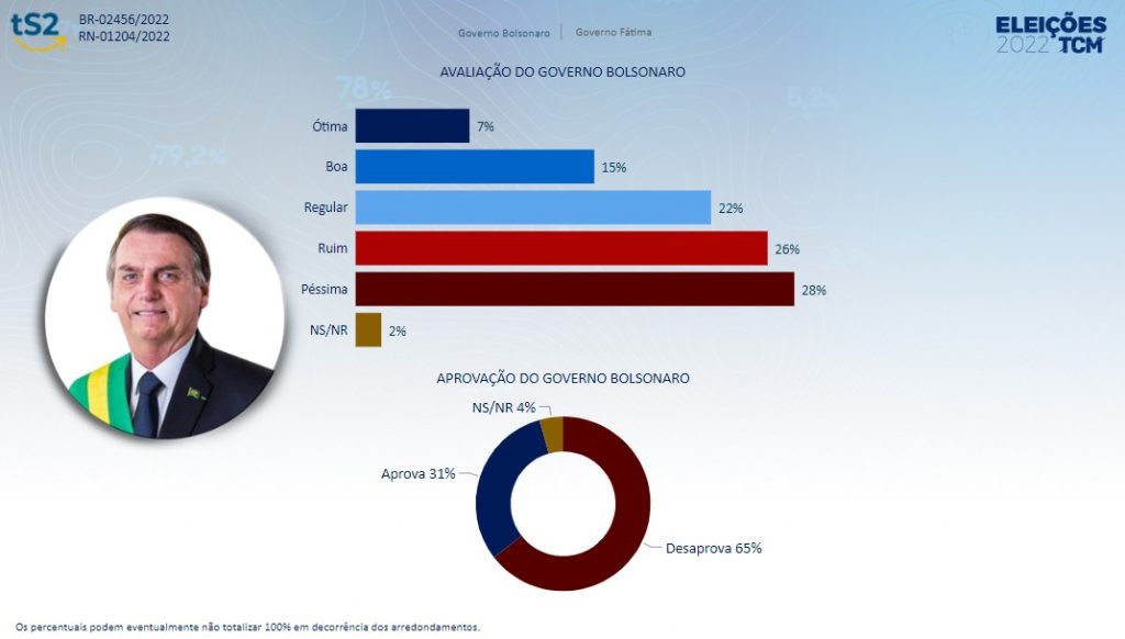 O Instituto TS2 ouviu 1.600 pessoas entre os dias 18 e 21 de agosto. A margem de erro é de 2,4 pontos percentuais para mais ou para menos com intervalo de confiança de 95%. A pesquisa está registrada na Justiça Eleitoral sob os protocolos BR–02456/2022 e RN-01204/2022.