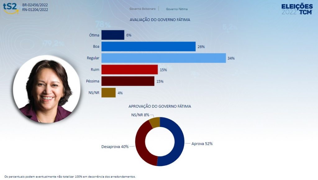 A pesquisa TS2/TCM trouxe números positivos em relação a avaliação da governadora Fátima Bezerra (PT) no comparativo com a última pesquisa estadual realizada pelo instituto, em abril.