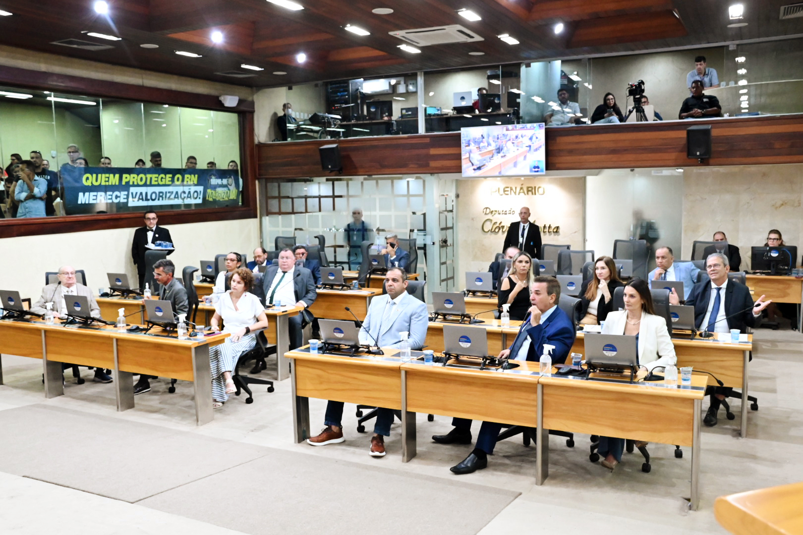 O projeto 2402/2024 do Governo do RN que trata da revisão salarial dos integrantes dos órgãos operacionais do Sistema Estadual de Segurança Pública do Estado foi aprovado pelos deputados durante a sessão plenária da Assembleia Legislativa, nesta quarta-feira (13). Outros projetos de iniciativa parlamentar também foram apreciados.