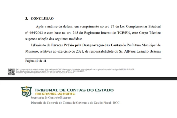 O parecer prévio do Tribunal de Contas tem caráter técnico e serve de base para o julgamento político-administrativo das contas pela Câmara Municipal de Mossoró, responsável pela decisão final. O documento ainda deverá ser analisado pelo pleno do TCE.
