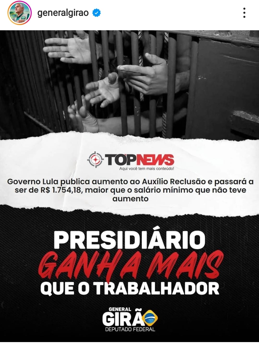 Enquanto Girão se limitou a apagar o post no Twitter com a informação falsa sobre o auxílio reclusão sem fazer a devida retratação.