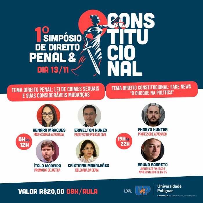 O Blog do Barreto estará representado pelo editor desta página no I Simpósio de Direito Penal e Constitucional da Universidade Potiguar (UnP) que será realizado hoje a noite.