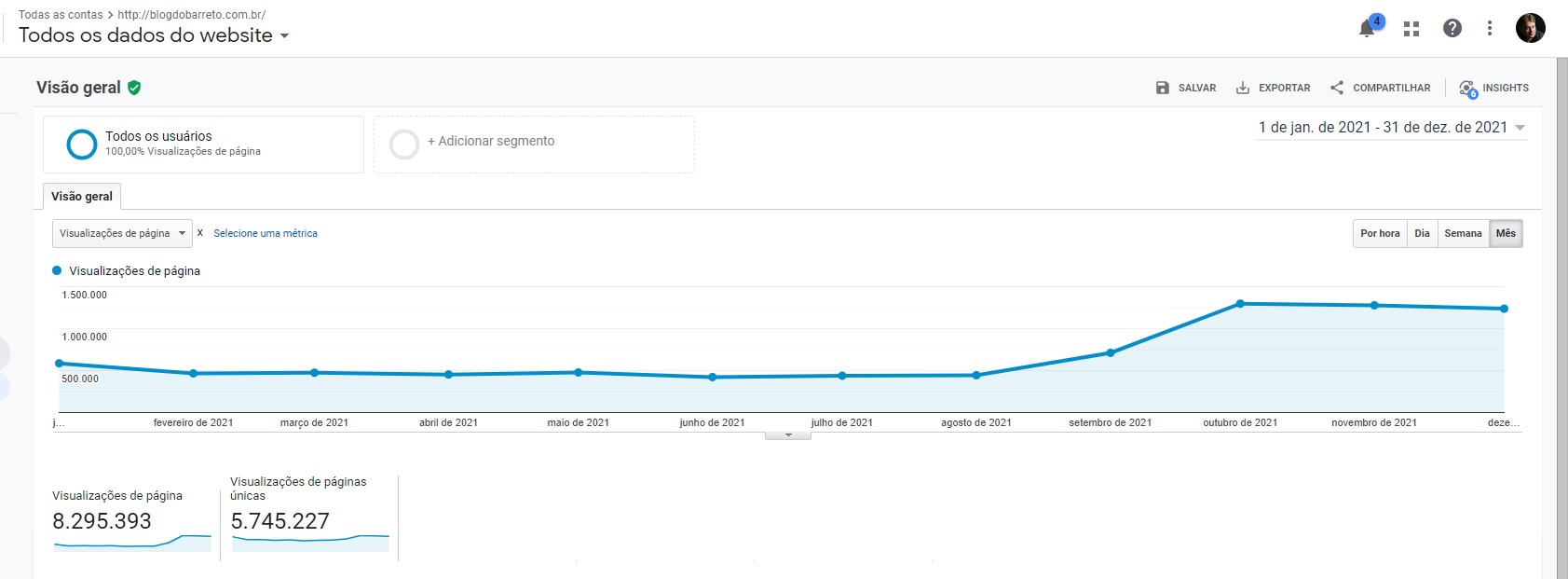 Outro dados que subimos foi relação a quantidade de visitantes únicos. Foram 5.745.227 contra 4.924.738 em 2020, crescimento de 16,66%.