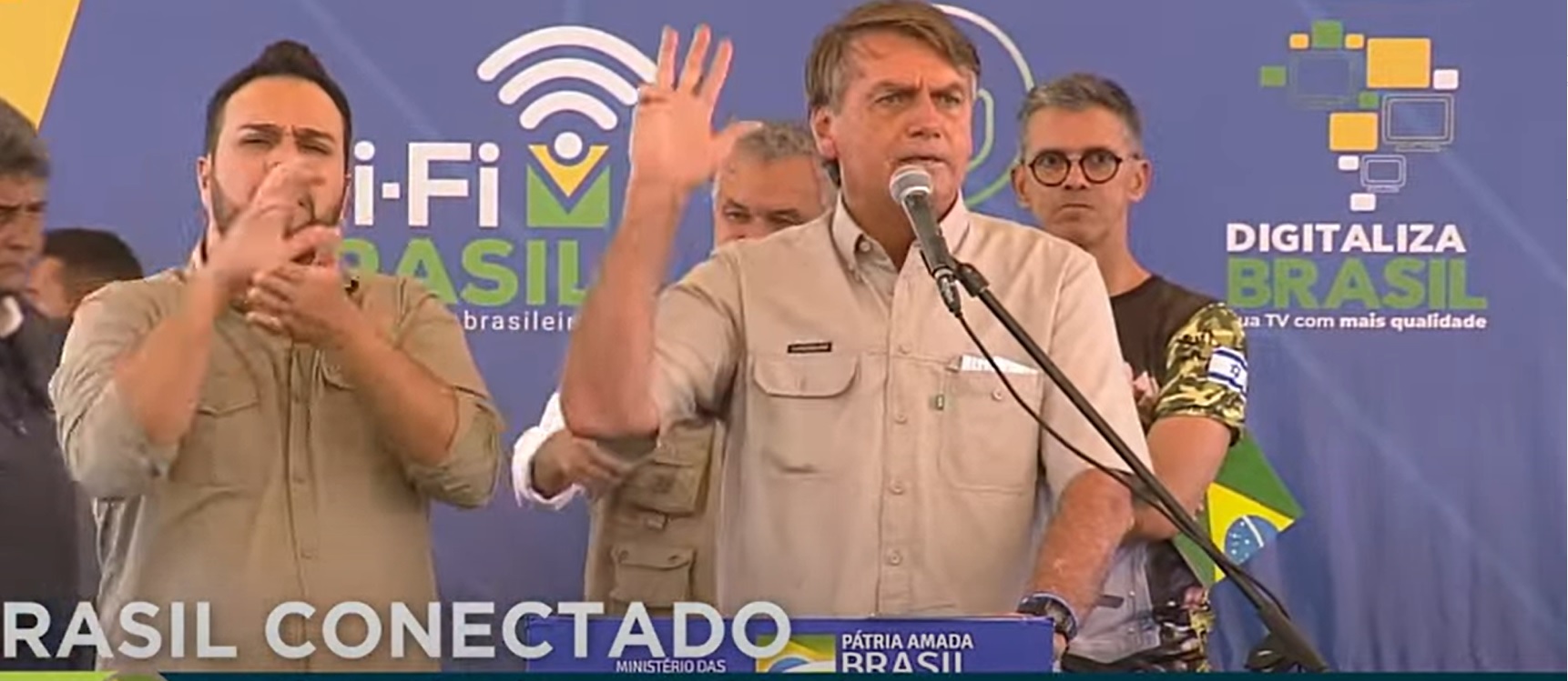 Em seguida Bolsonaro levantou a mão direita com o dedo mindinho abaixado, numa referência ao dedo perdido por Lula num acidente de trabalho, e falou que a corrupção atrasou a obra. “Só o que aquele cara (referência Lula) desviou daria para fazer 60 vezes a transposição do Rio São Francisco”, declarou.