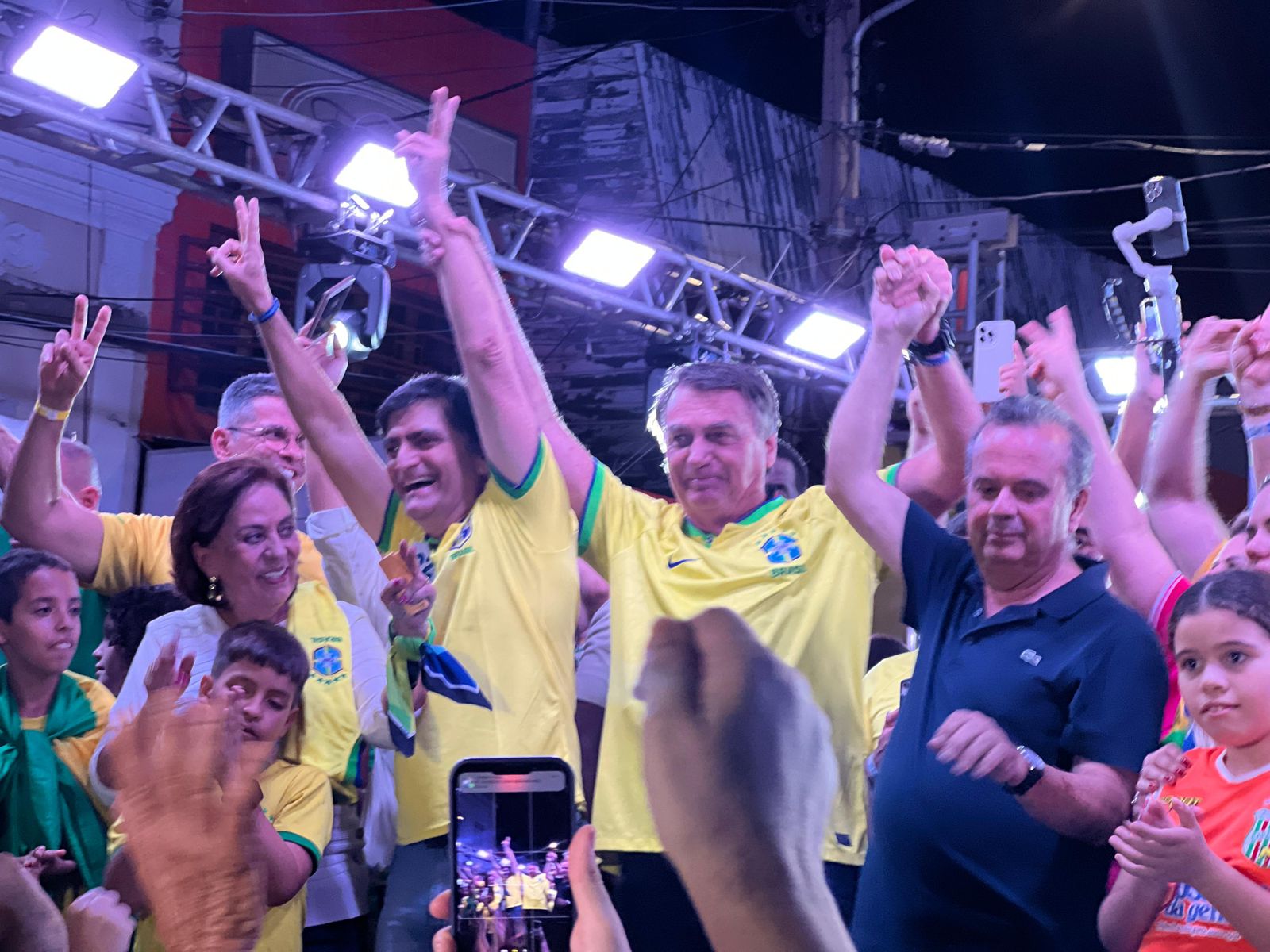 Ao lado do senador Rogério Marinho, secretário geral do Partido Liberal, Bolsonaro começou o dia na cidade de Extremoz, às 8 horas, onde a prefeita Jussara Sales (PL) concorre à reeleição.
