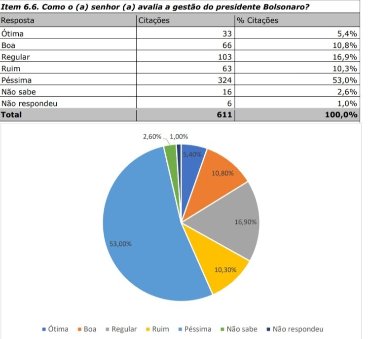 A pesquisa do Instituto Sensatus realizada em Pau dos Ferros, principal cidade da Região do Alto Oeste Potiguar, apontou uma avaliação negativa (soma de ruim e péssimo) do presidente Jair Bolsonaro superior a 60%.