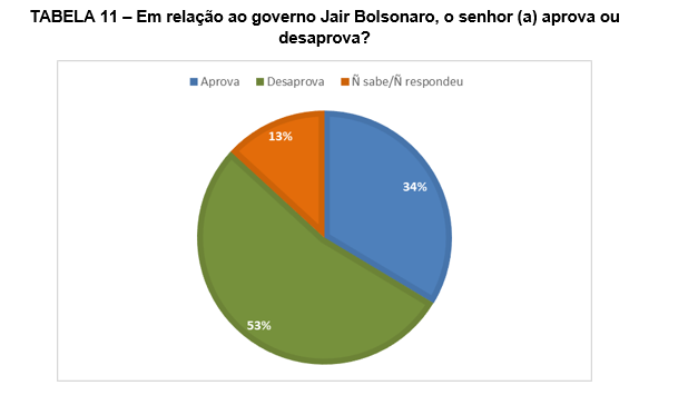 A pesquisa Exatus aferiu a avaliação do governo Bolsonaro entre os mossoroenses. A desaprovação é de 53%, a aprovação é de 34% e outros 13% não souberam responder.