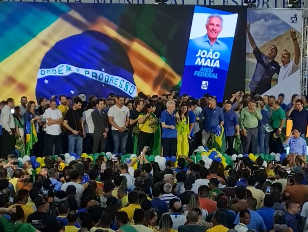 Durante convenção partidária no Palácio dos Esportes, em Natal, o presidente estadual do PL e candidato à reeleição a deputado federal, João Maia, citou toda nominata presente e agradeceu a participação de todos. João Maia destacou a grandiosidade do evento.