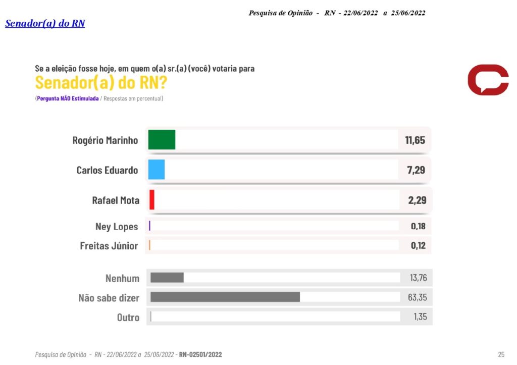 O Instituto Consult ouviu 1.700 eleitores entre os dias 22 e 25 de junho. A margem de erro é de 2,3 pontos percentuais com intervalo de confiança de 95%. A pesquisa foi registrada na Justiça Eleitoral sob os protocolos BR-00969/2022 e RN/02501/2022.