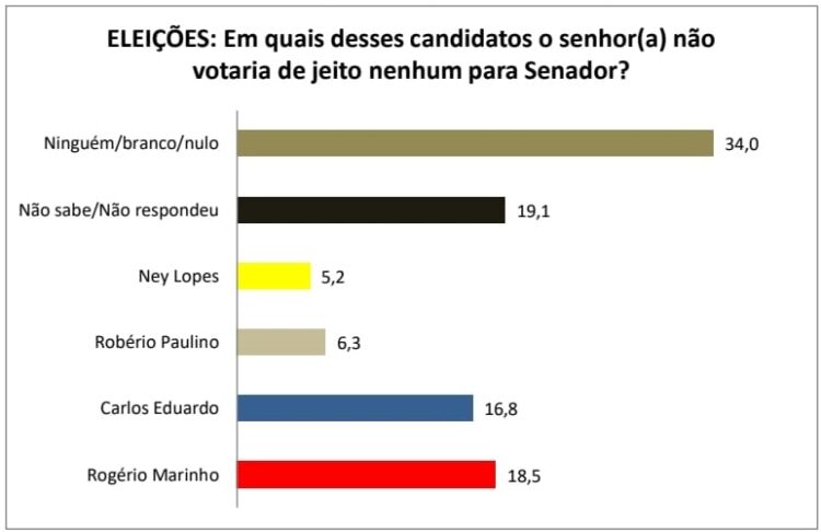 Carlos Eduardo também lidera o índice de rejeição em empate técnico com Rogério Marinho.