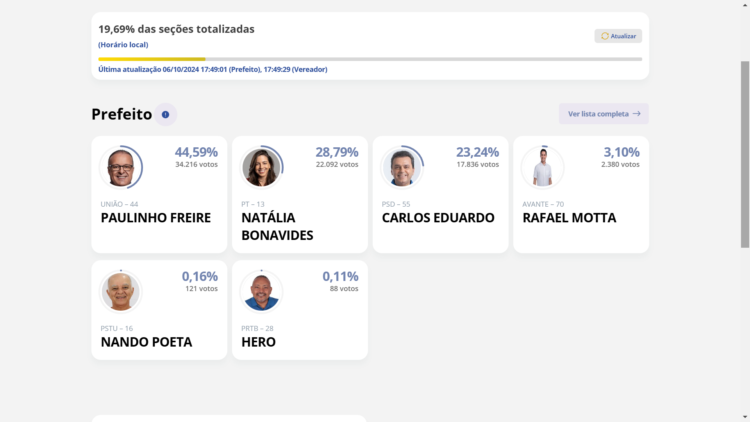 Com quase 20% das urnas apuradas, o eleitorado natalense vai vivenciando um cenário diferente de todas as projeções apontadas por pesquisas.