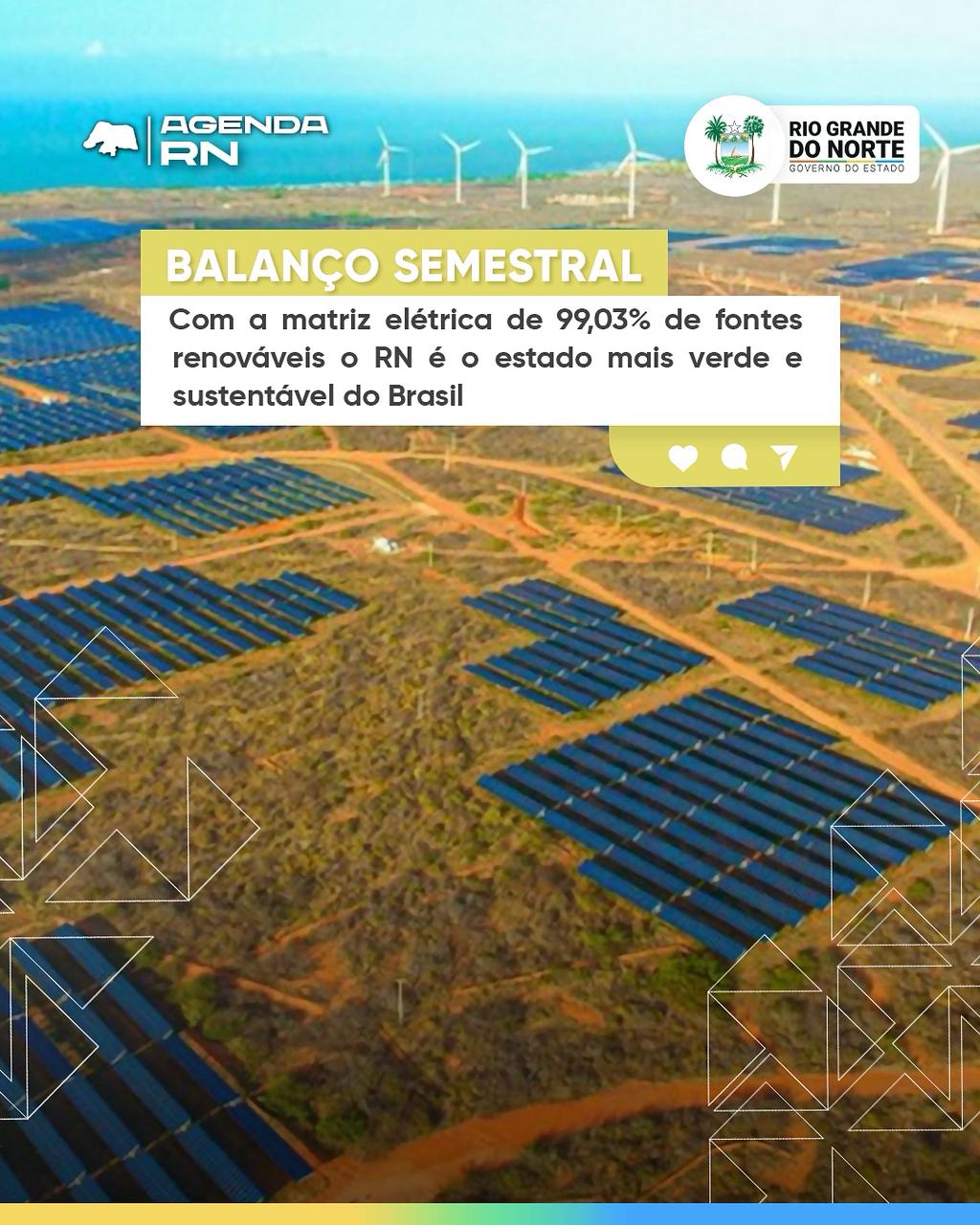 As fontes renováveis de energia eólica, solar fotovoltaica, biomassa e hídrica representam 99,03% da matriz elétrica do estado quando nos referimos a potência outorgada, já em relação a potência instalada, essas mesmas fontes somam 98,5% da geração de energia o que torna o Rio Grande do Norte o estado mais verde e sustentável em matriz elétrica do país. Esses e outros dados estão disponíveis no Balanço do Setor Elétrico do RN – 1º semestre de 2025, divulgado nesta quarta-feira (10) pela Secretaria de Desenvolvimento Econômico, da Ciência, da Tecnologia e da Inovação.