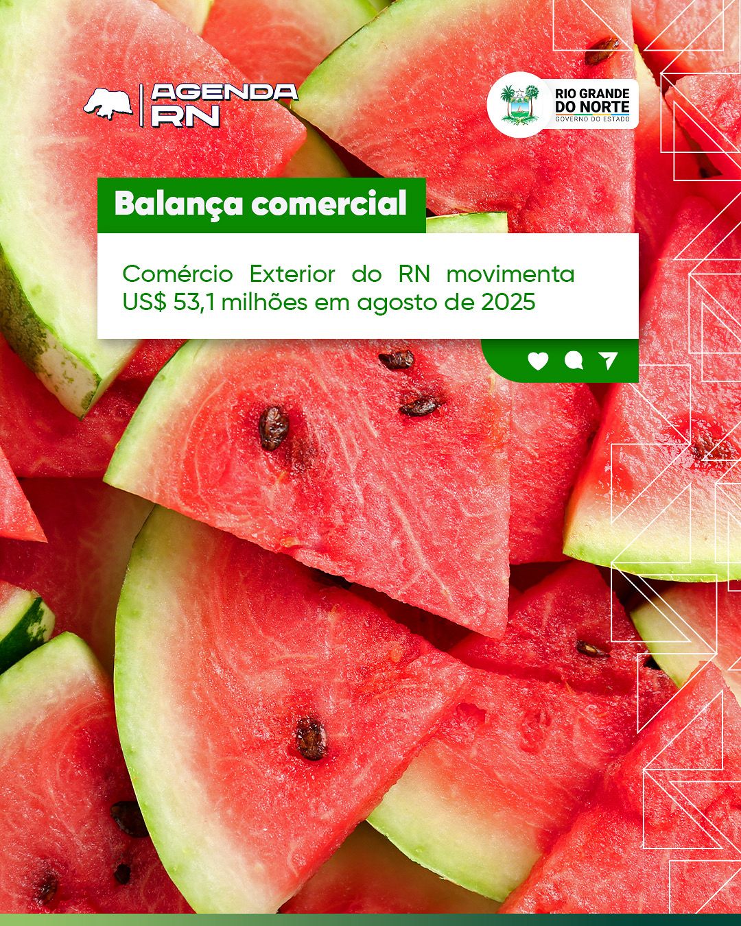 O Rio Grande do Norte alcançou um desempenho relevante nas transações internacionais em agosto de 2025. Com a corrente de comércio exterior – resultado da soma das exportações com as importações – o estado registrou movimentação total de US$ 53,1 milhões, composta por US$ 23,3 milhões em exportações e US$ 29,8 milhões em importações.