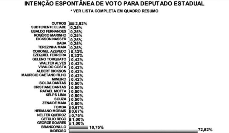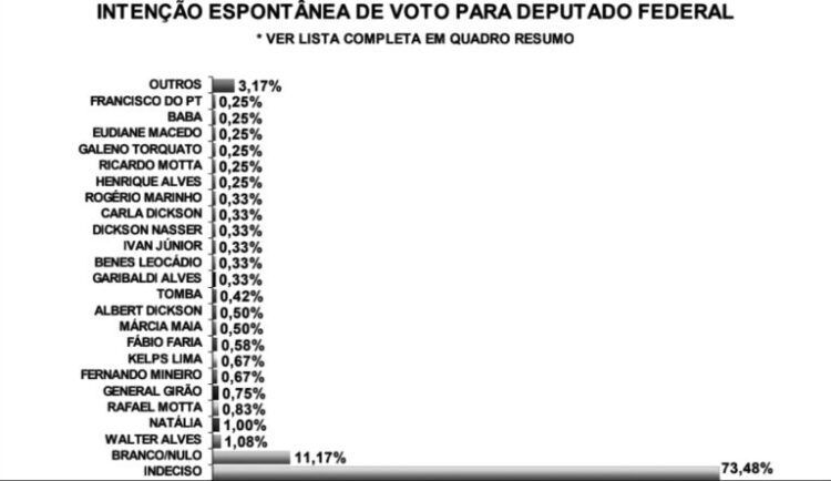 O Instituto Perfil também levantou os números das intenções de voto para deputado estadual e federal do Rio Grande do Norte.