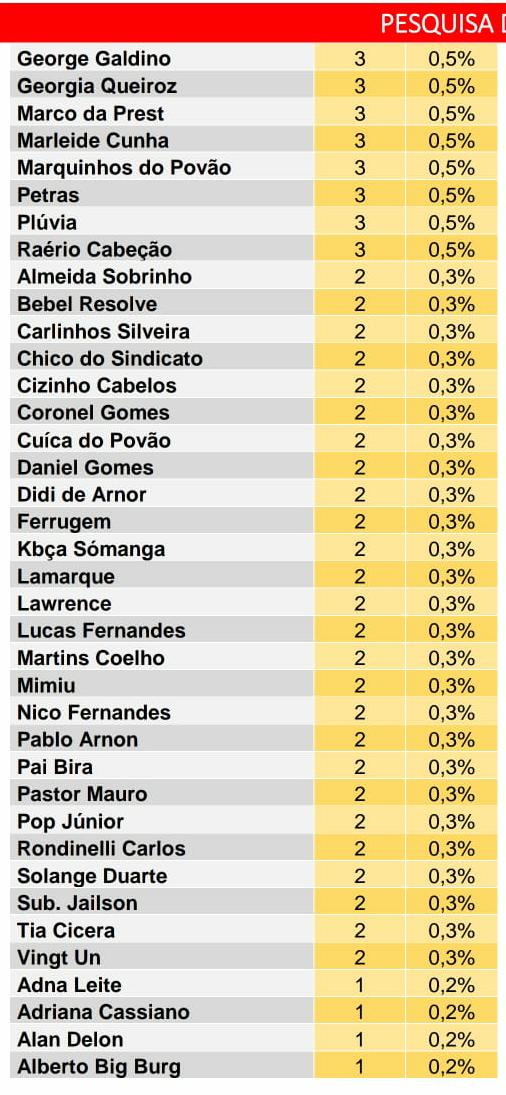 A pesquisa foi realizada nos dias 21 e 22 de outubro ouvindo 600 pessoas. A margem de erro é de 3,9% com intervalo de confiança de 95%. O registro na Justiça Eleitoral é o de número RN-08062/2020.
