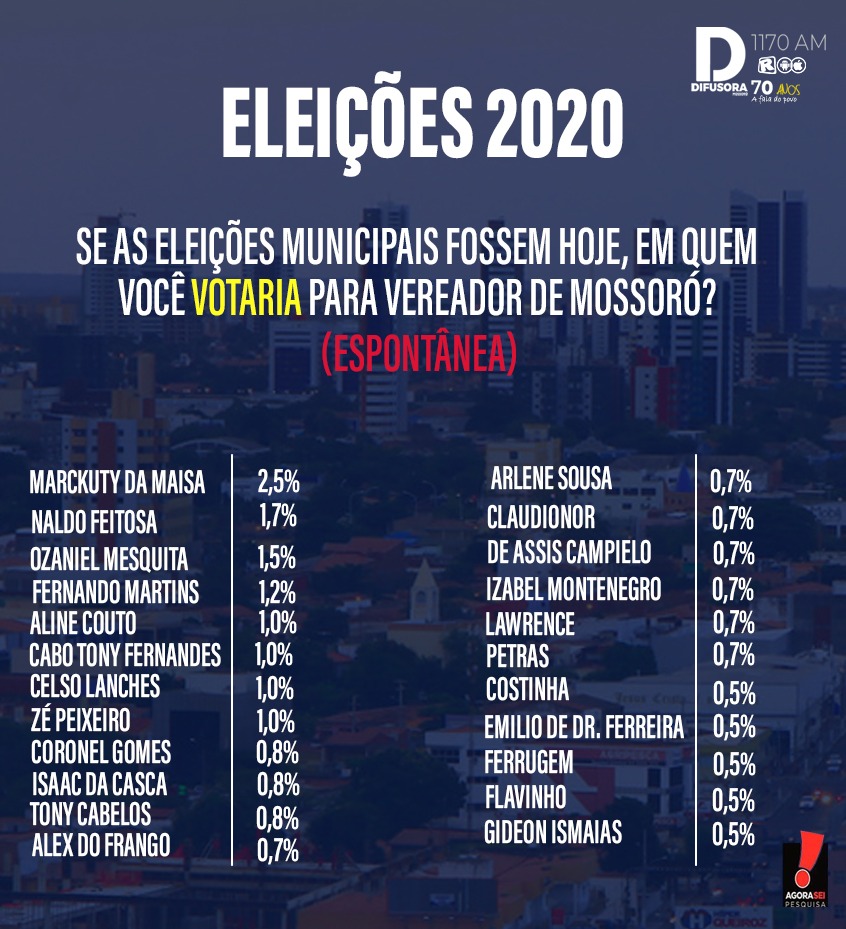 A rádio Difusora de Mossoró apresentou a lista dos vereadores mais citados na Pesquisa AgoraSei.