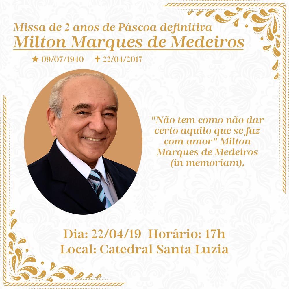 Hoje será celebrada uma missa em homenagem a Milton Marques, às 17h, na Catedral de Santa Luzia.