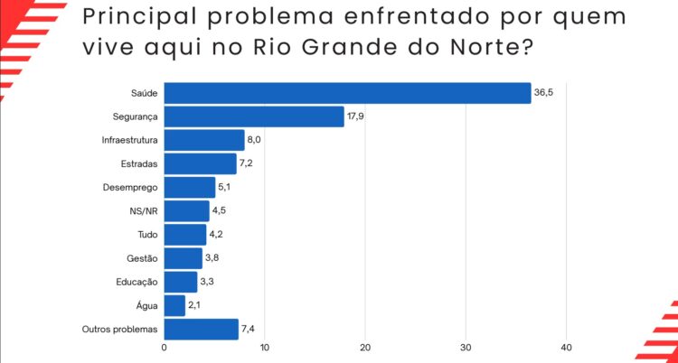 A resposta está na saúde. 36,5% consideram esse o maior problema do Rio Grande do Norte. É o dobro em pontos percentuais em relação a segurança.