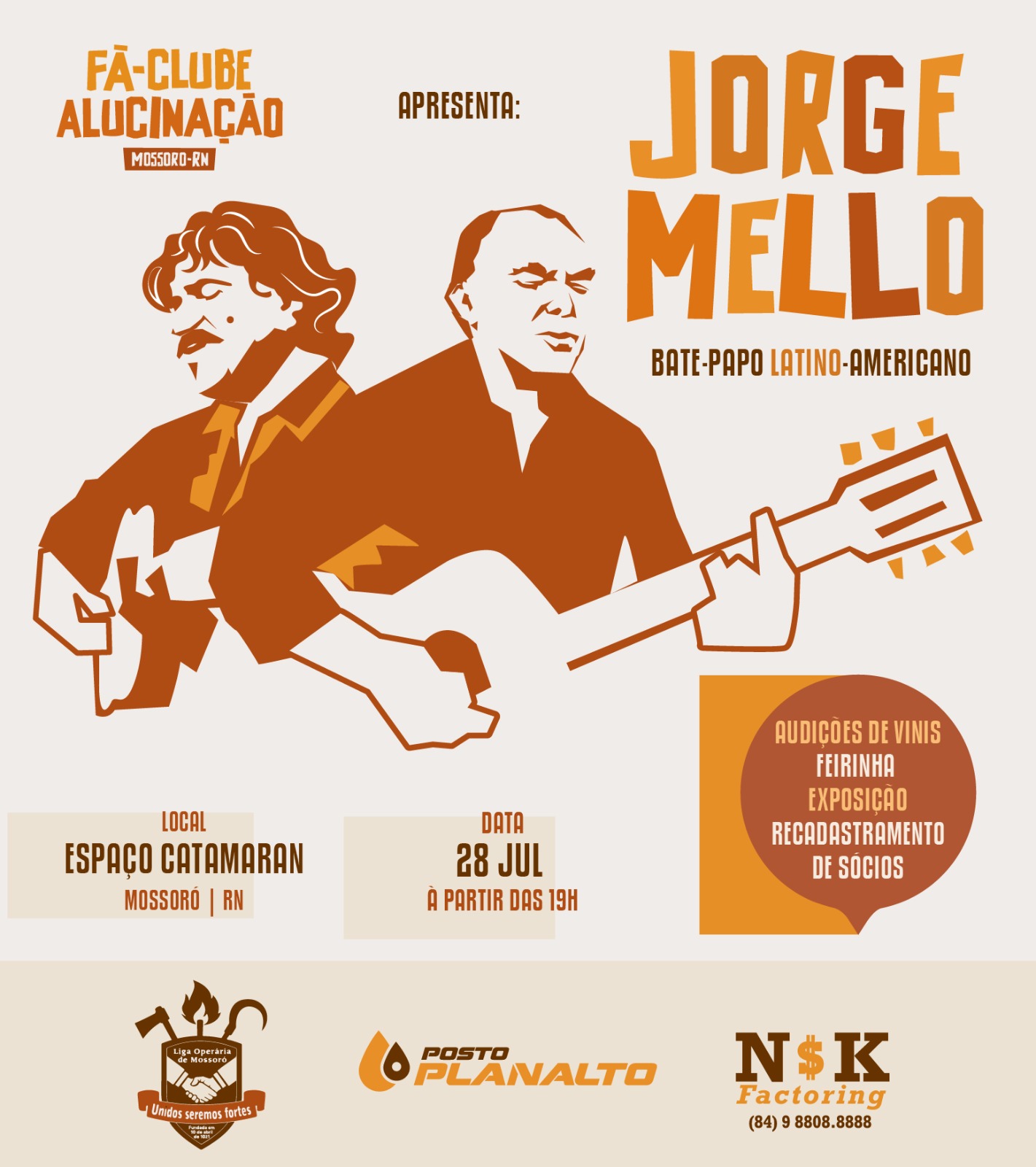 “Jorge Mello é uma referência da nossa MPB. Esteve e ainda está ao lado de grandes nomes da nossa música e será uma alegria compartilhar das suas experiências musicais. O Fã-clube Alucinação se sente honrado com a presença dele em Mossoró”, comentou.