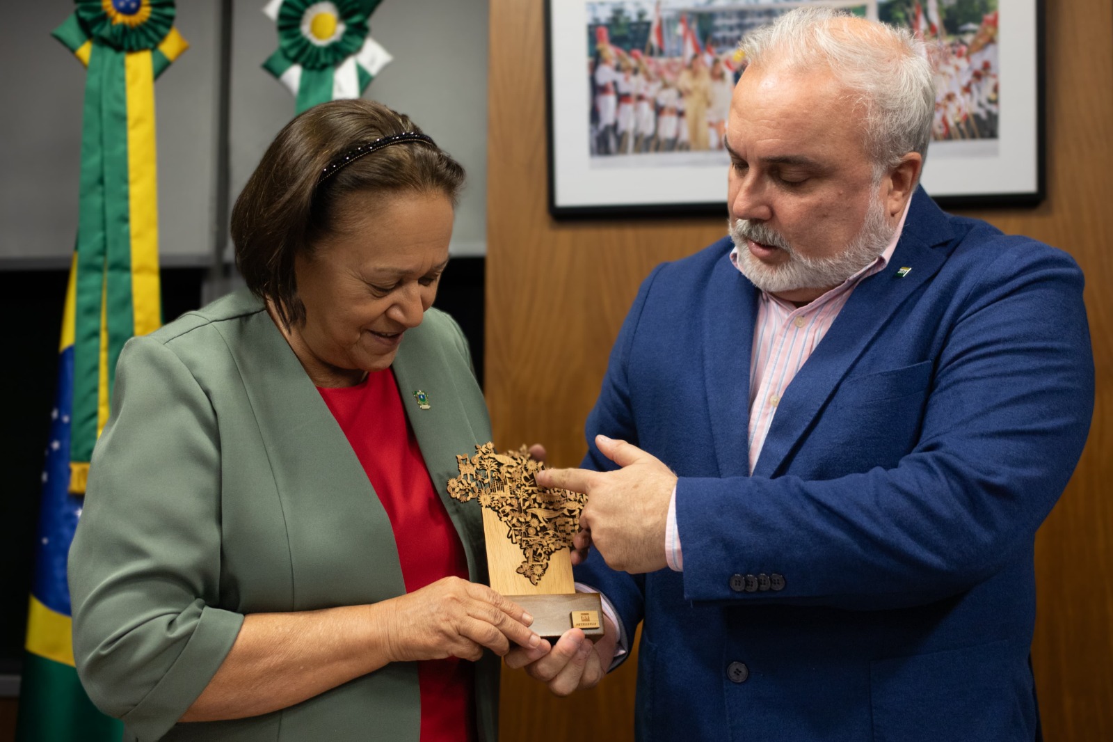 “A assinatura desse memorando irá renovar não só minha esperança, mas também a minha confiança na Petrobras, que está de volta retomando esse papel tão importante e estratégico para o desenvolvimento não só do Rio Grande do Norte, mas nacional”, afirma Fátima Bezerra, acompanhada do secretário adjunto do Desenvolvimento Econômico, Hugo Fonseca. A governadora comemorou o recente anúncio feito pela Petrobras, nesta última terça-feira (09), da retomada da exploração de petróleo na margem equatorial, começando exatamente pelo Rio Grande do Norte.