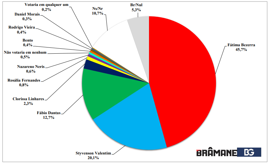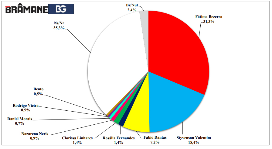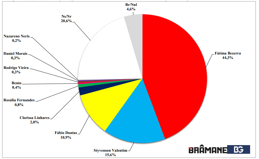 Em termos de votos válidos a governadora teria 54,4% se as eleições fossem hoje seguida por Styvenson com 25,1% e Fábio Dantas (SD) com 15,1%.