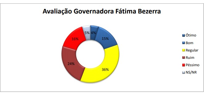 Apenas 19% consideram a gestão de Fátima Bezerra (PT) ótima (4%) ou boa (15%). Para 36% a governadora tem um desempenho regular. É o que mostra a pesquisa do Instituto Seta encomendada pelo Blog do Barreto.