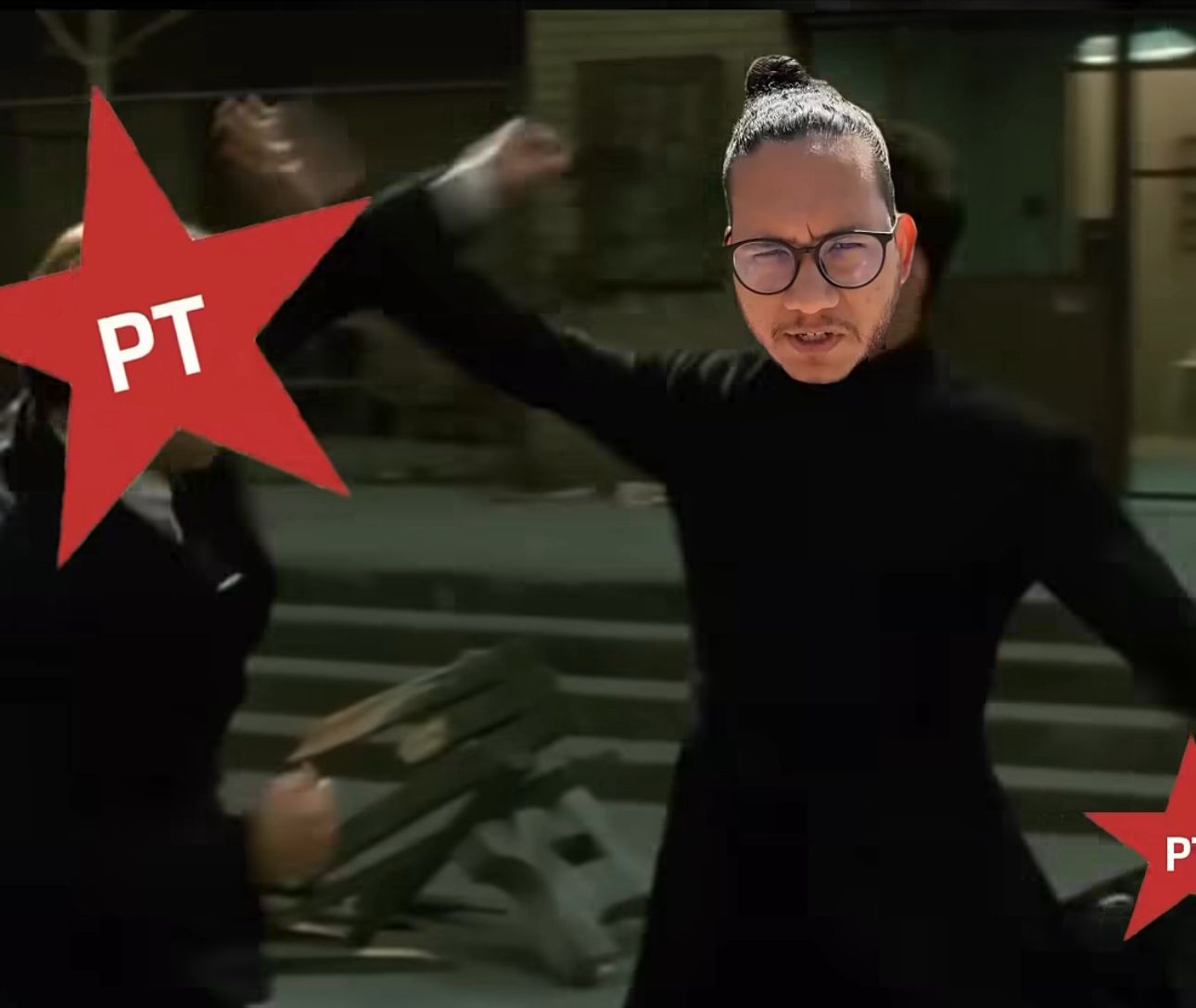 Depois Faustino postou um vídeo em que age como o personagem Neo do filme Matrix na cena em que ele luta com vários adversários, no caso o vereador estaria enfrentando petistas.