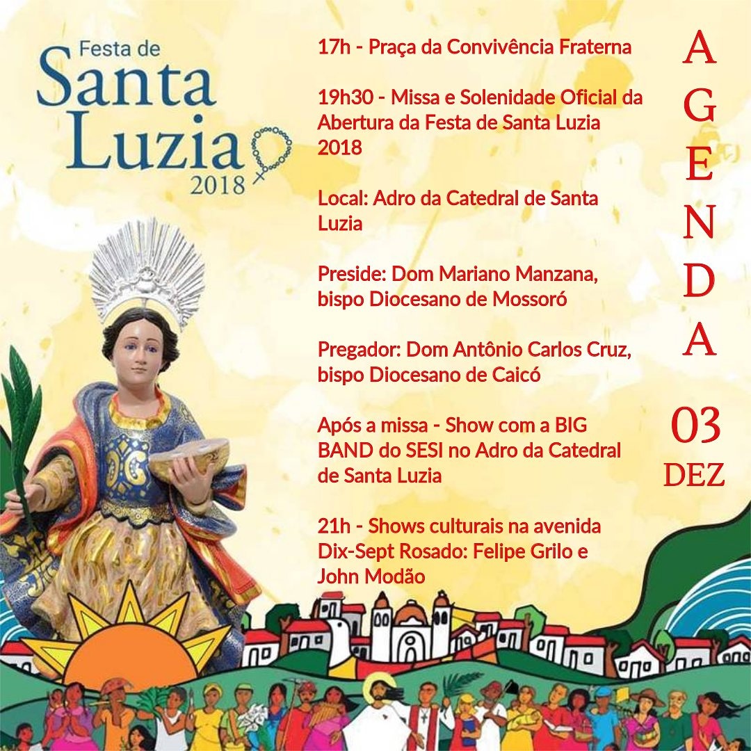 Após a missa de abertura a Big Band do Sesi fará uma apresentação no Adro em homenagem a Santa Luzia.