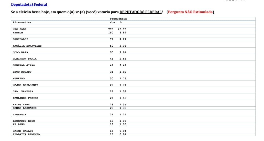 O ex-senador Garibaldi Alves Filho (MDB) foi o nome mais citado para deputado federal na pesquisa Consult divulgada esta manhã pela Tribuna do Norte e Difusora de Mossoró.