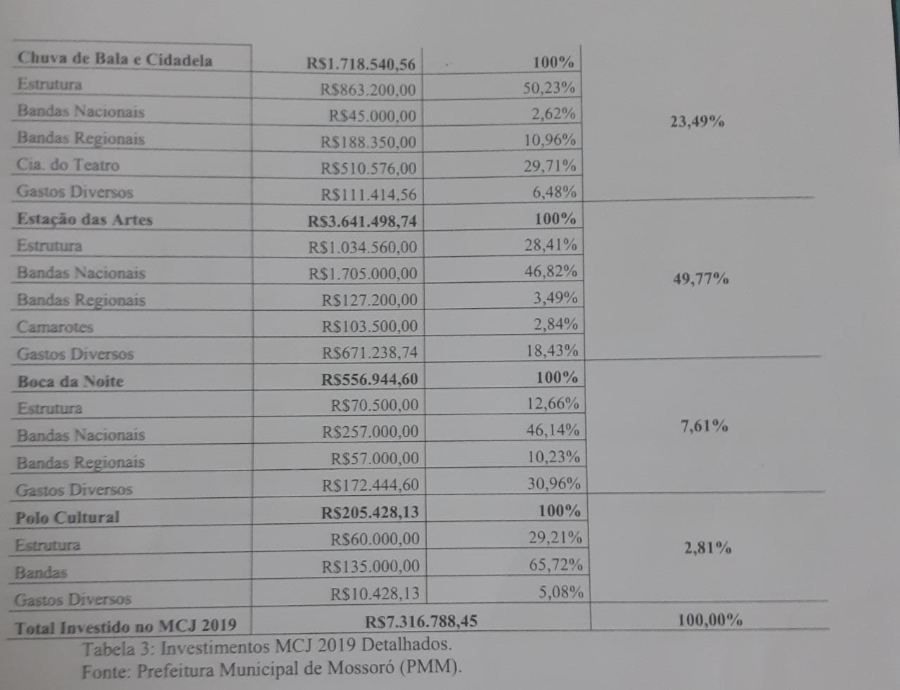 Para o leitor ter uma noção o MCJ inteiro de 2017 custou menos que o gasto este ano apenas com os shows na Estação das Arte que foi de R$ 3.641.498,74.