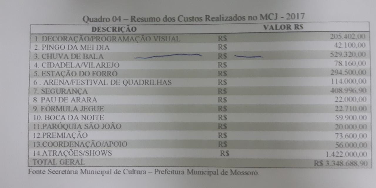 O máximo que ele conseguiu foi um ofício do secretário municipal de cultura Eduardo Falcão informando em números redondos que foram gastos no Mossoró Cidade Junina 2019, mas sem o detalhamento de atrações e dos custos (ver abaixo).