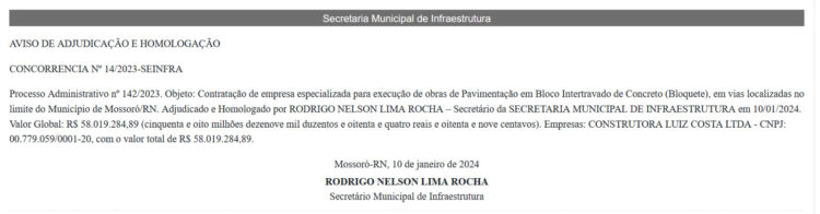 O Blog do Barreto acessou documentos que mostram que a contratação por R$ 58.019.284,89 para as obras de intertravados é baseada em recursos de operação de crédito (empréstimo), recursos da União (emendas) e recursos não vinculados a impostos.
