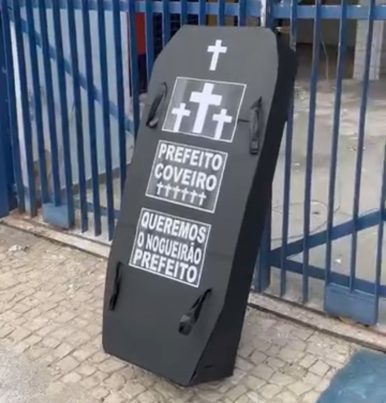No protesto, os torcedores levaram placas e algumas delas chamavam Allyson Bezerra de “prefeito coveiro” e “queremos o Nogueirão, prefeito”. O prefeito também foi chamado de mentiroso.