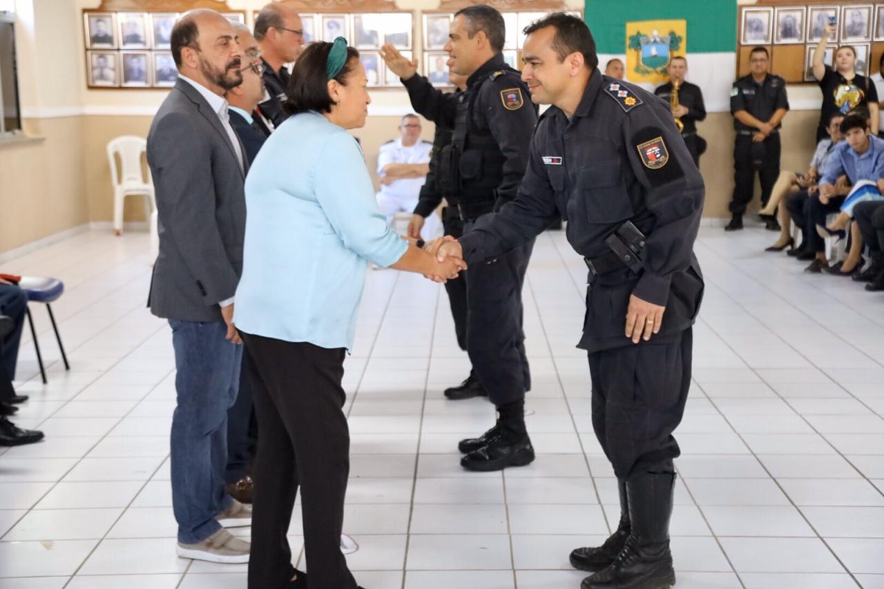 Fátima Bezerra ainda acrescentou que “olho para vocês e agradeço pelo resultado que alcançamos este ano. Saímos da posição de Estado mais violento do país, para um dos quatro que mais reduziram a violência. Isso se deve à determinação do Governo e ao trabalho dedicado e eficiente dos nossos policiais que, se considerarmos apenas os casos de mortes, tivemos 500 vidas poupadas em relação a 2018”.