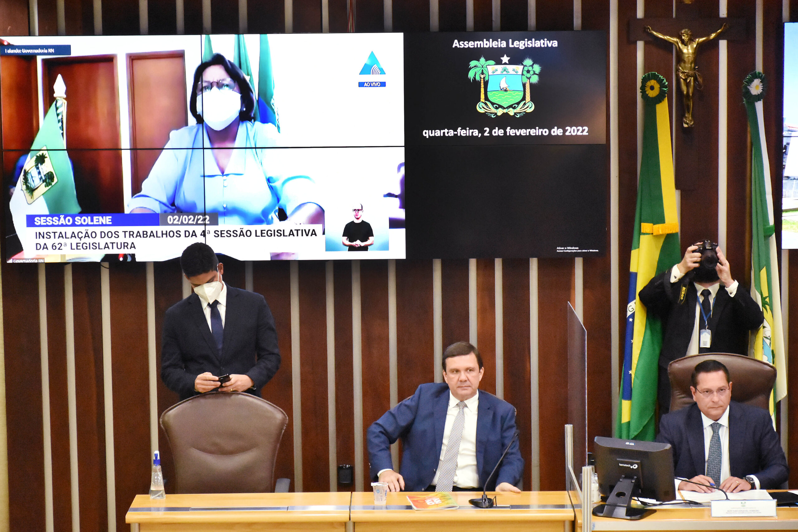 A governadora Fátima Bezerra fez nesta quarta-feira, (02) a leitura da mensagem do Governo do Estado à Assembleia Legislativa na abertura da 4ª sessão da 62ª legislatura. Aos 24 deputados estaduais a governadora, ao lado do vice-governador Antenor Roberto, afirmou: “Este balanço que lhes apresento retrata um Rio Grande que tem Norte, que saiu da inércia. Um governo que não se deixou paralisar pelas dificuldades, honrou compromissos e inovou na forma de fazer gestão, sem abrir mão do perfil técnico e da visão social de nossa equipe que nos orgulha pelo relevante espírito público, competência técnica e honestidade. Um governo que trabalhou sempre de forma integrada, ouvindo a sociedade, em diálogo constante e intensa parceria democrática com os demais Poderes. Que construiu políticas públicas com participação social através dos conselhos, comitês e conferências”.
