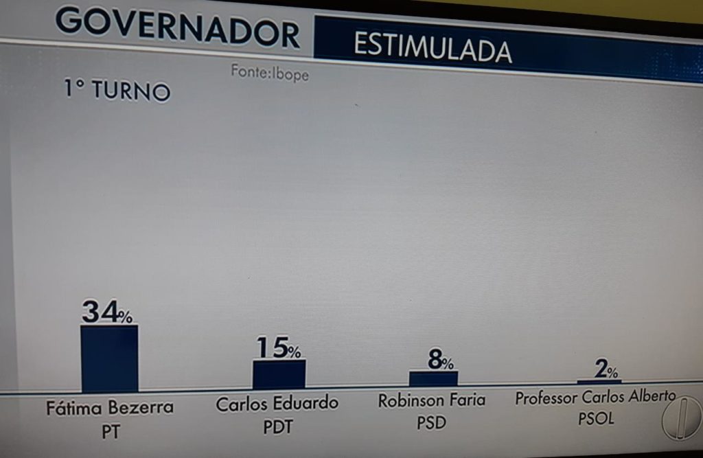 A Intertv Cabugi acabou de publicar uma pesquisa do Instituto Ibope em que a senadora Fátima Bezerra (PT) aparece com 19% de vantagem sobre o ex-prefeito de Natal Carlos Eduardo Alves (PDT).