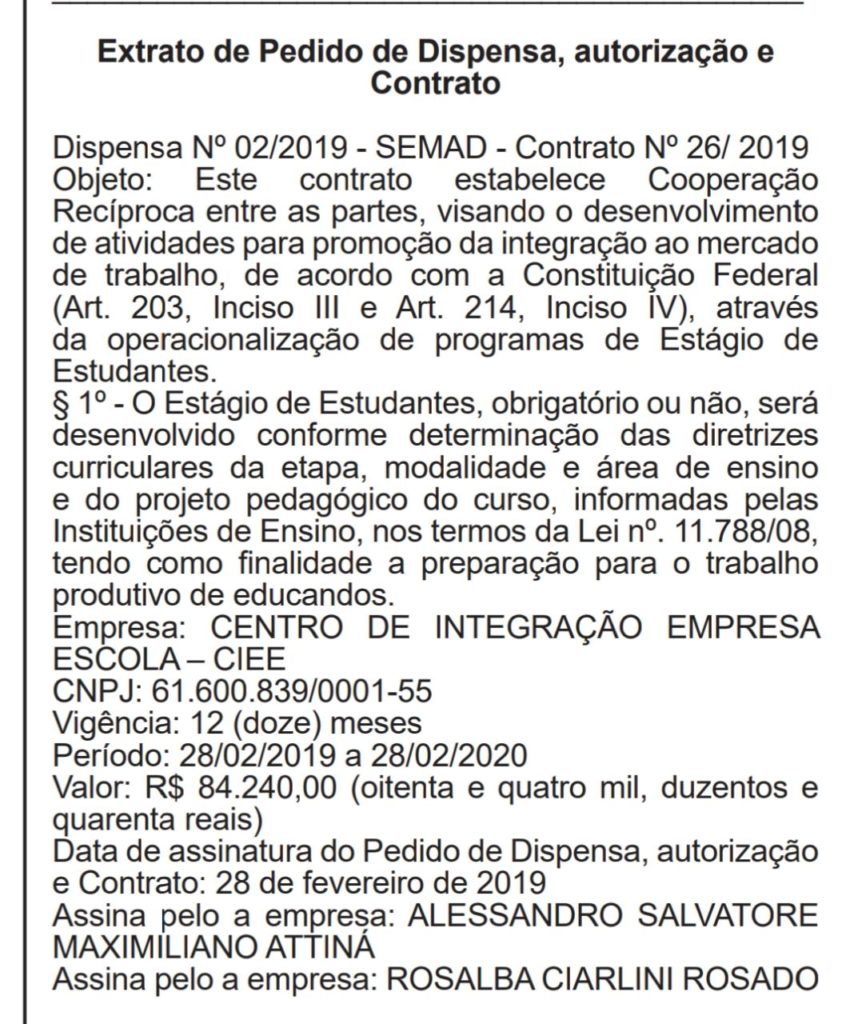 No dia 28 de fevereiro, Rosalba contratou em nome da Prefeitura de Mossoró o Centro de Integração Empresa-Escola (CIEE), em entidade privada embora sem fins lucrativos.