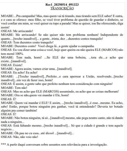 No diálogo, Oseas diz ser necessário juntar dinheiro aos poucos para “ganhar moral com o homem” que “está disparado” quando ele chegar ao Governo.