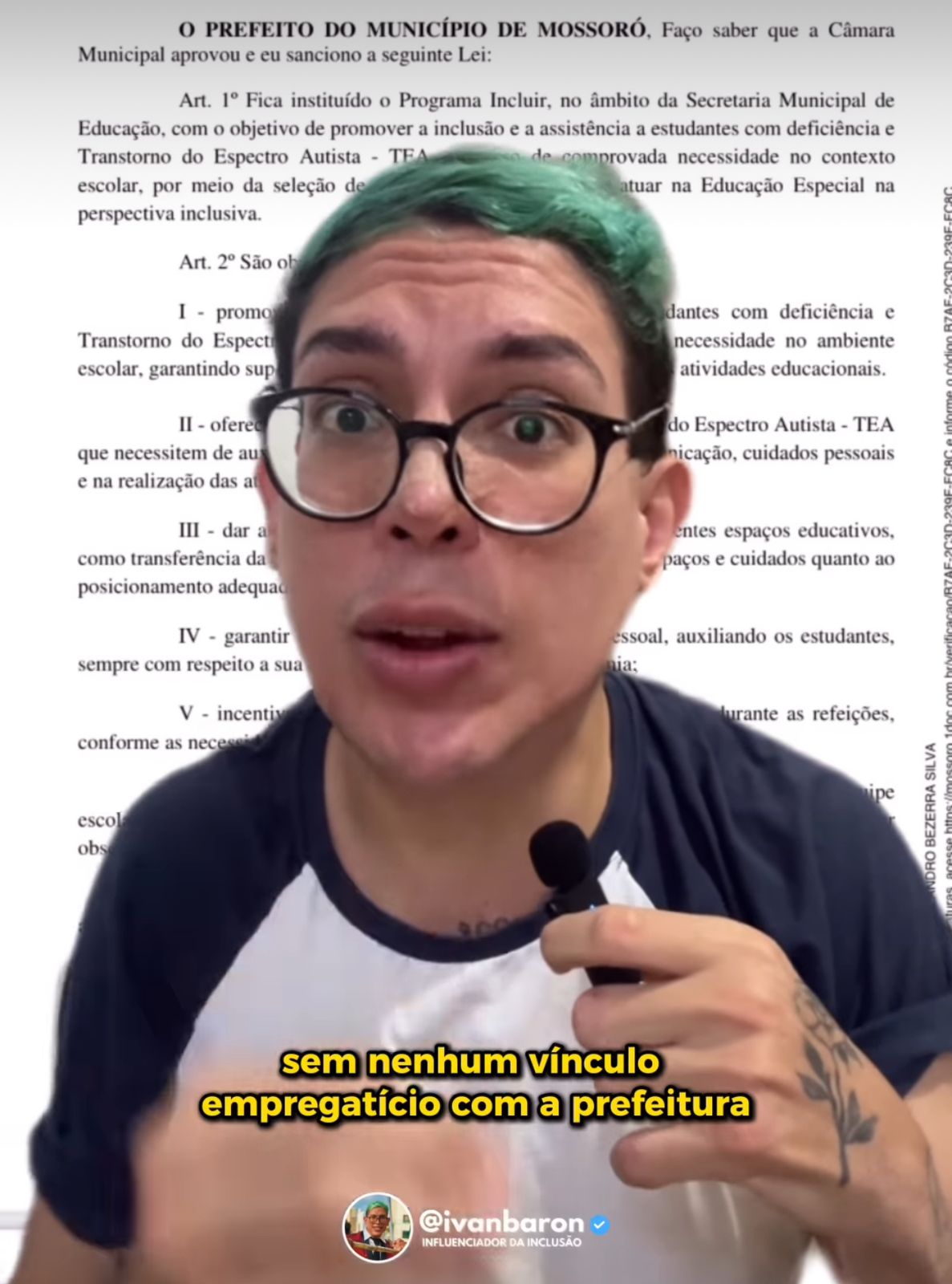 Referência na defesa dos direitos das pessoas com deficiência, Ivan Baron reagiu ao projeto de lei enviado para a Câmara Municipal pelo prefeito Allyson Bezerra (UB) que pede autorização para contratar 800 voluntários sem qualquer qualificação para atuar em sala de aula com crianças PCDs e autistas.