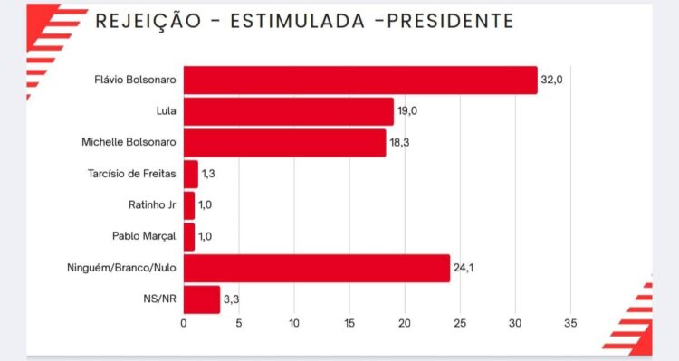 O cenário se completa com os dados de rejeição estimulada, que ajudam a explicar as dificuldades do campo oposicionista. Flávio Bolsonaro lidera a rejeição, com 32%, seguido por Lula (19%) e Michelle Bolsonaro (18,3%). Mesmo com rejeição relevante, Lula mantém ampla vantagem, o que aponta para um eleitorado numeroso e consistente. O conjunto dos dados indica que, neste momento, a corrida presidencial em Mossoró está fortemente inclinada a favor do atual presidente, com a oposição fragmentada e enfrentando altos índices de rejeição.