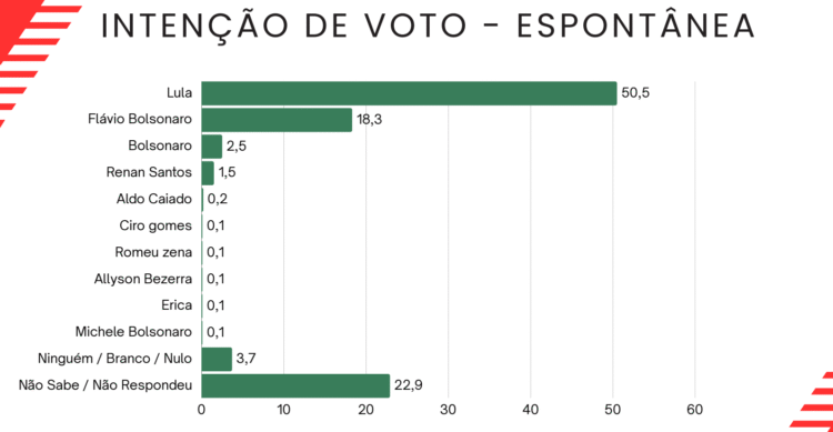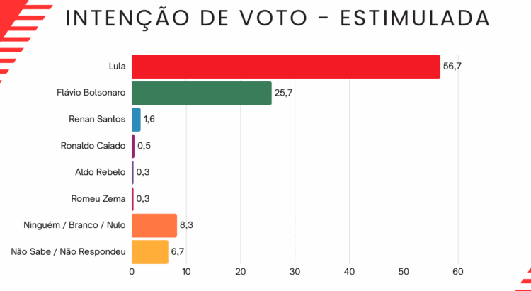 A pesquisa Seta/Blog do Barreto/O Potiguar traz uma vantagem de 31 pontos percentuais do presidente Lula da Silva (PT) sobre o senador Flávio Bolsonaro (PL) dentro do Rio Grande do Norte.